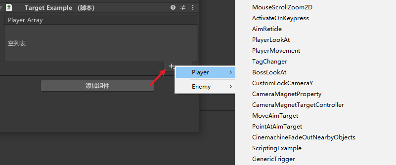 1 2 3 4 5 6 7 8 9 10 11 12 13 14 15 16 17 18 public class TargetExample : MonoBehaviour { [SerializeField ] public List<PlayerItem> playerItemArray = new List<PlayerItem>(); } [System.Serializable ]public class PlayerItem { [SerializeField ] public Texture icon; [SerializeField ] public GameObject prefab; [SerializeField ] public string name; [SerializeField ] public int attack; }