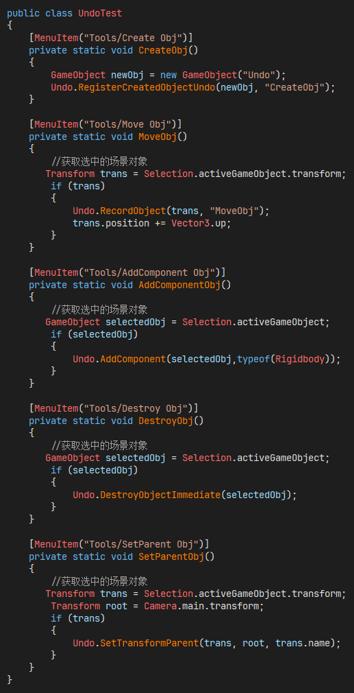 Undo Undo用于编辑器模式下的撤销操作,这里介绍几种常用的API。