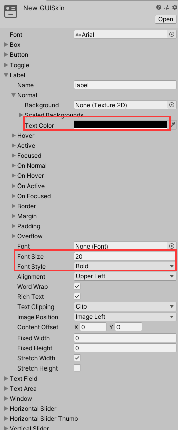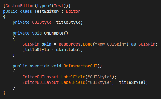 接下来,就可以通过GUISkin资源来修改样式效果了。如下修改会得到和之前通过直接修改GUIStyle一样的效果。