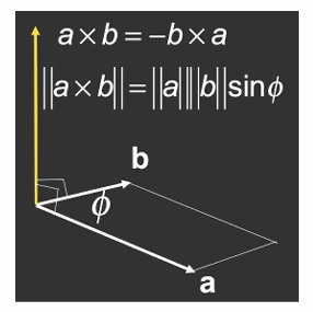 $a \times b = \begin{pmatrix} y_az_b - y_bz_a\\\\ z_ax_b - x_az_b\\\\ x_ay_b-y_ax_b \end{pmatrix}$