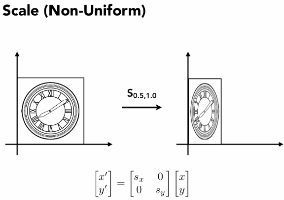 $S(s_x, s_y, s_z) = \begin{bmatrix} s_x & 0 & 0 & 0 \\ 0 & s_y & 0 & 0 \\ 0 & 0 & s_z & 0 \\ 0 & 0 & 0 & 1 \end{bmatrix}$