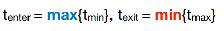- 总的来说,光线和AABB的交点有且仅有 $t_{enter}