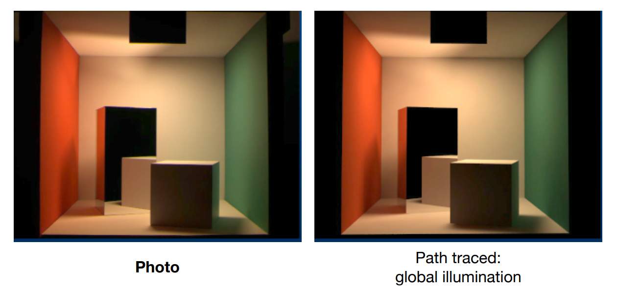 Whitted-Style光线追踪的做法是,光线在镜面反射表面弹射,而在漫反射表面停止,这显然是不符合现实的