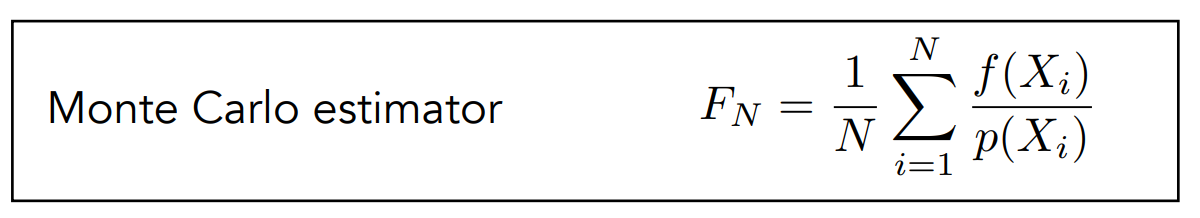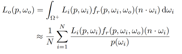 对于之前的渲染方程,我们可以用蒙特卡洛积分法进行求解,忽略自发光项(仅计算直接光照),简单考虑均匀采样的情况