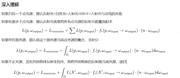 渲染方程描述了从一个点出发的光强由两部分组成: