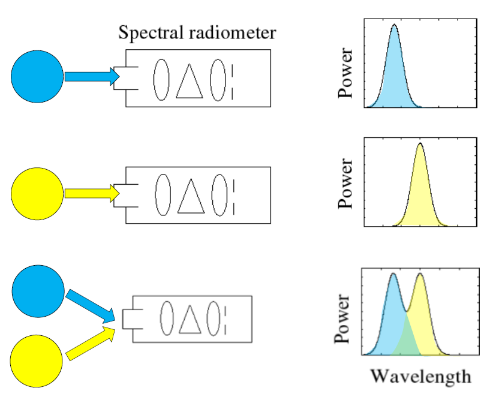 SPD具有线性叠加的性质,;两种光混合后的SPD = 两种光的SPD之和。