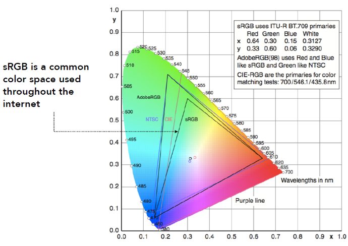 色域:一个颜色空间所有可以表示的颜色。不同颜色空间的色域范围不一致。