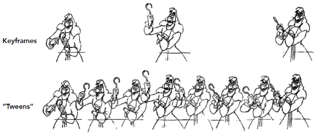 给定一些关键的帧,其他中间的过渡部分则通过插值的方式生成出来