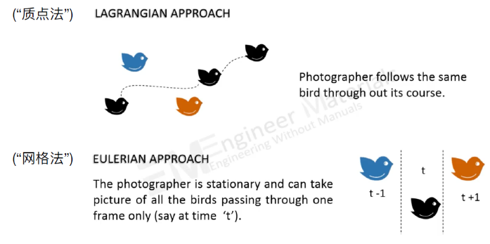 欧拉方法(网格法):将空间分割为网格,考虑网格随时间的变化情况